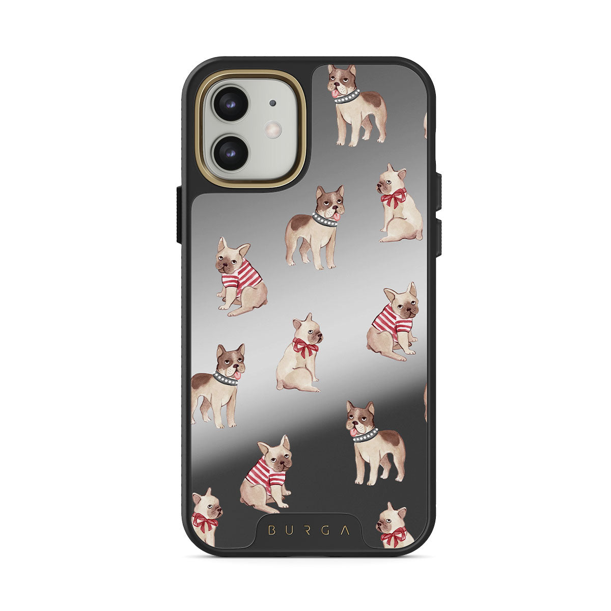 En este diseño: bulldogs franceses, perros, mascotas adorables, espejo