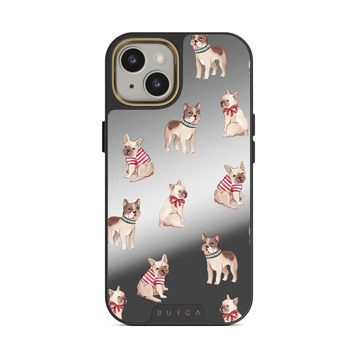 En este diseño: bulldogs franceses, perros, mascotas adorables, espejo