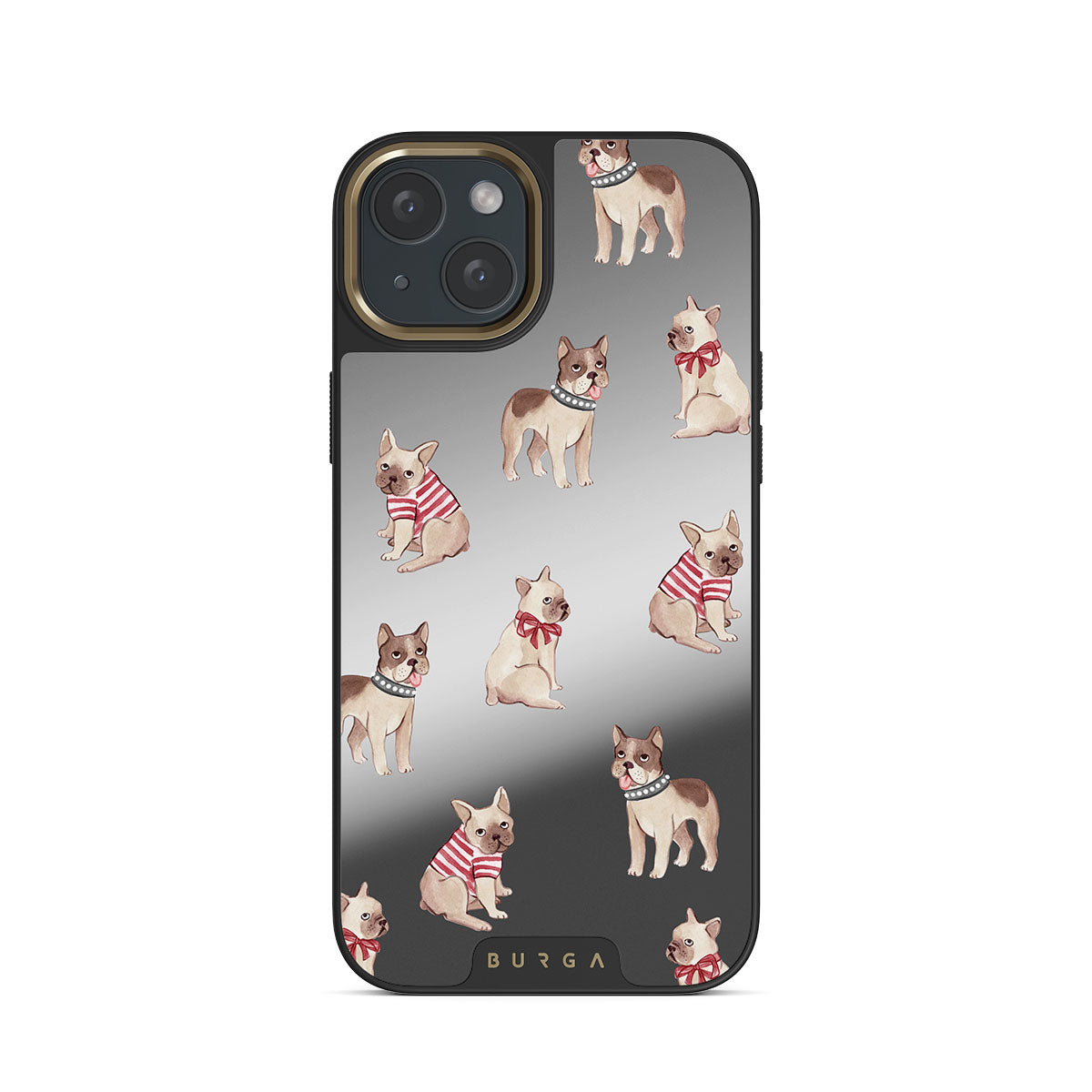 En este diseño: bulldogs franceses, perros, mascotas adorables, espejo