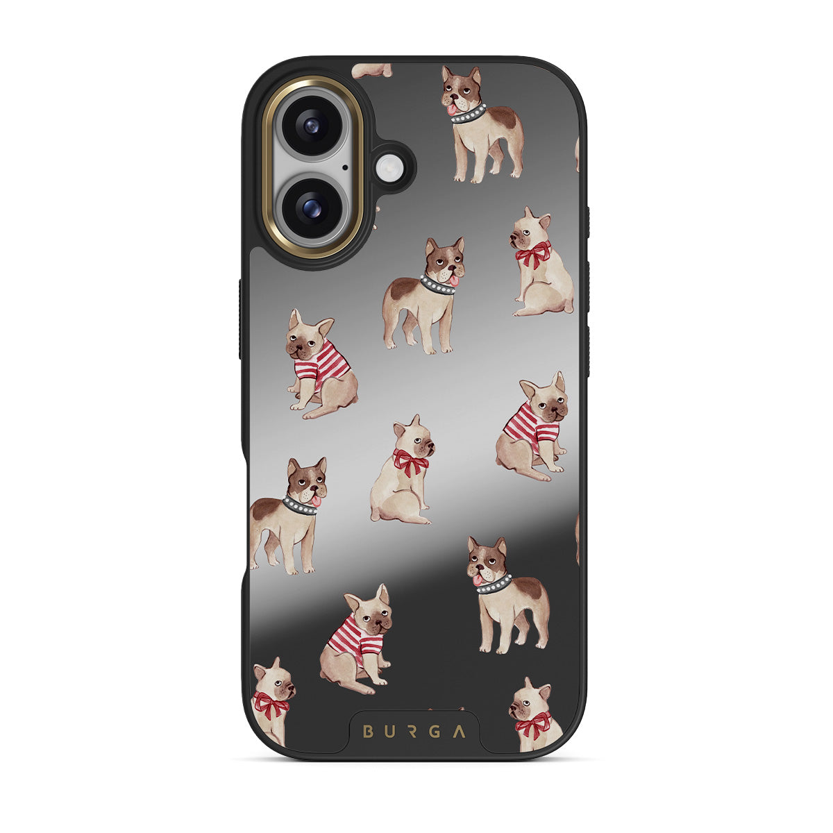 En este diseño: bulldogs franceses, perros, mascotas adorables, espejo