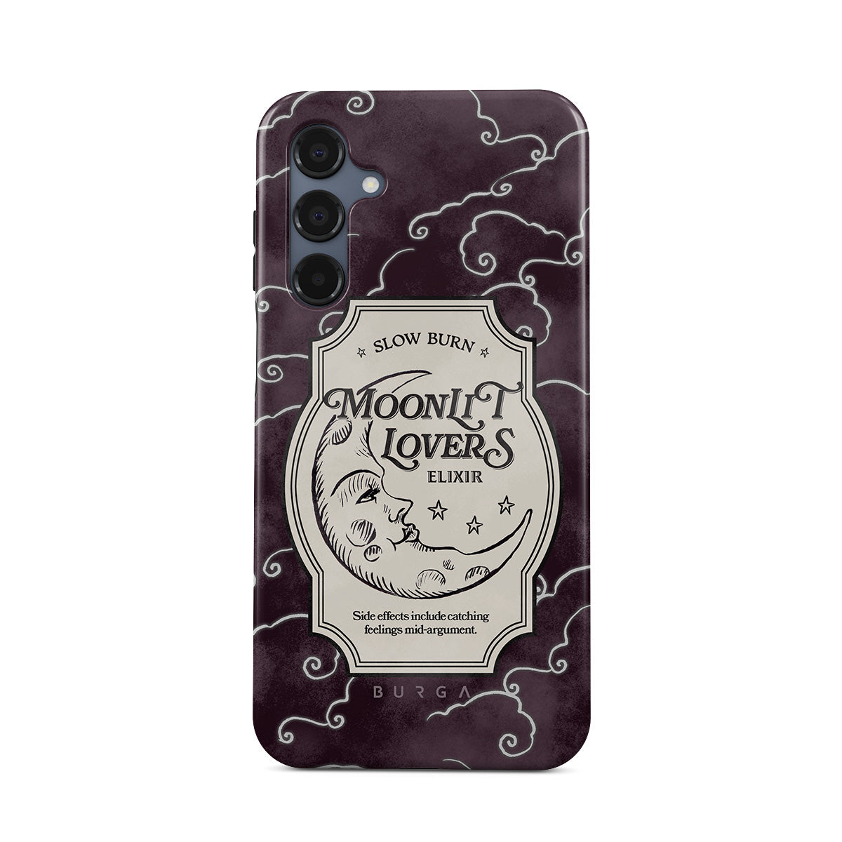 En este diseño: texto gótico, luna, estrellas, nubes