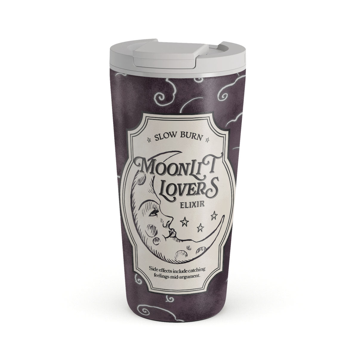 En este diseño: texto gótico, luna, estrellas, nubes