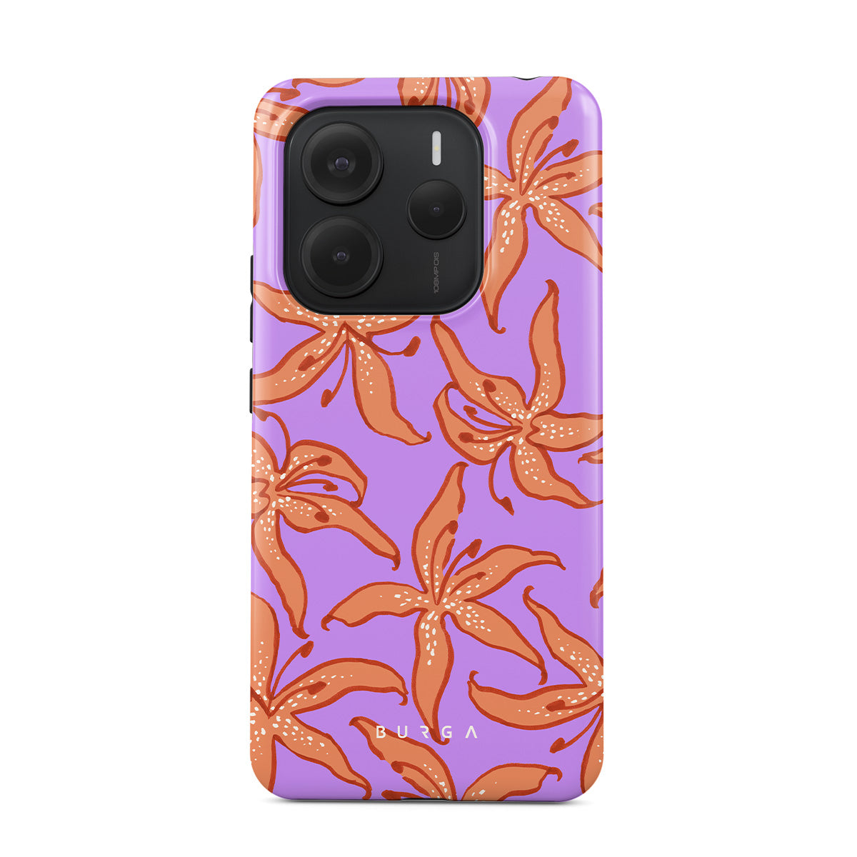 En este diseño: lirios naranjas, fondo morado.