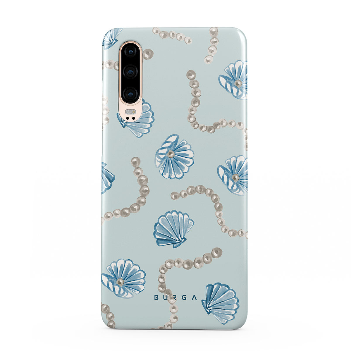 En este diseño: perlas, conchas, fondo azul claro, elementos del mar.