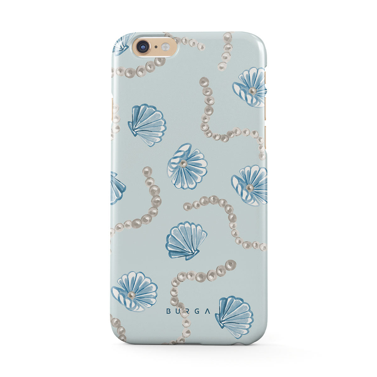 En este diseño: perlas, conchas, fondo azul claro, elementos del mar.
