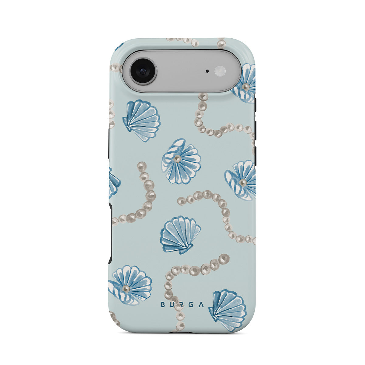 En este diseño: perlas, conchas, fondo azul claro, elementos del mar.