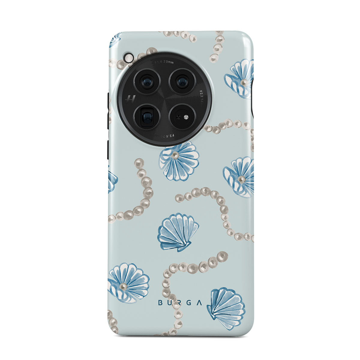 En este diseño: perlas, conchas, fondo azul claro, elementos del mar.