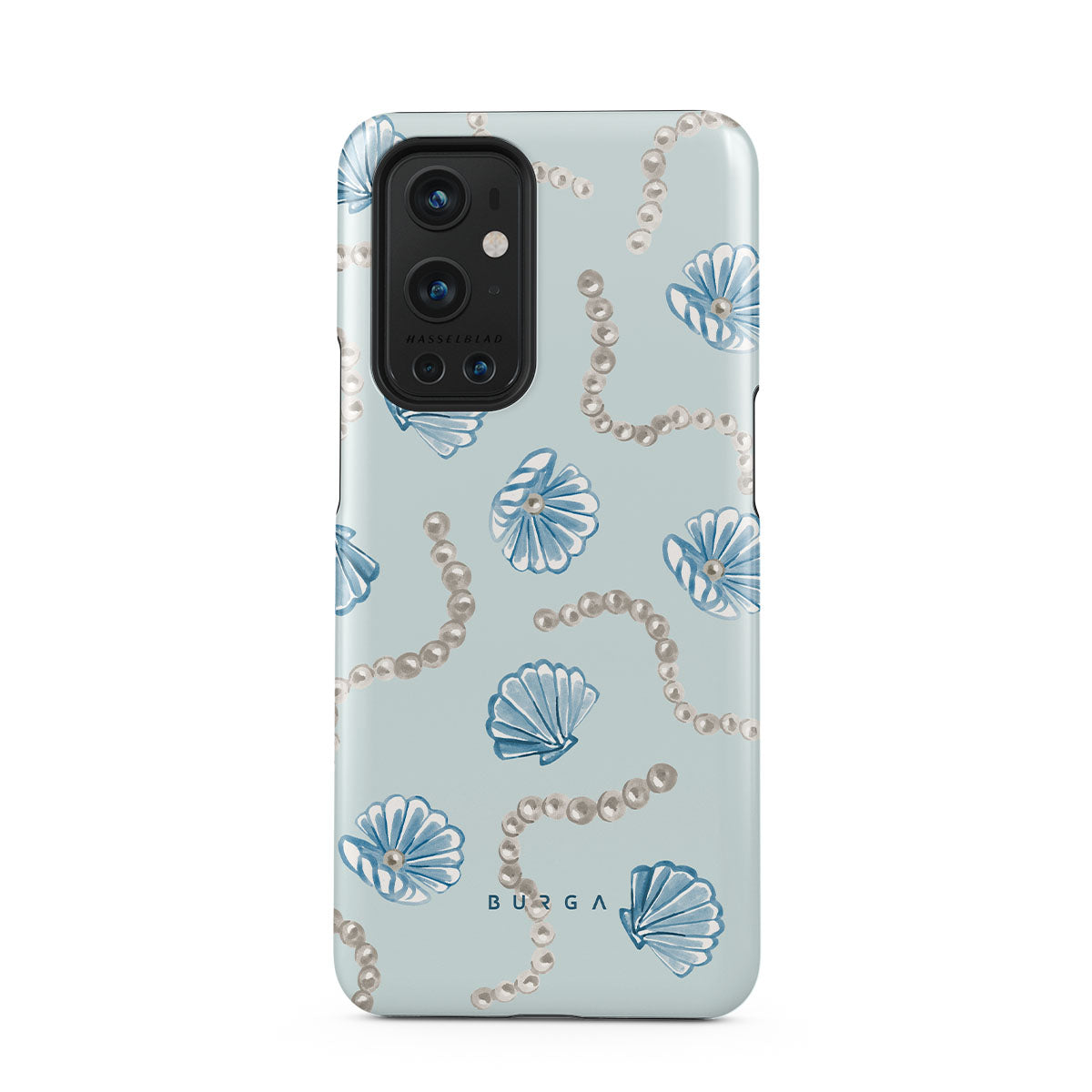 En este diseño: perlas, conchas, fondo azul claro, elementos del mar.