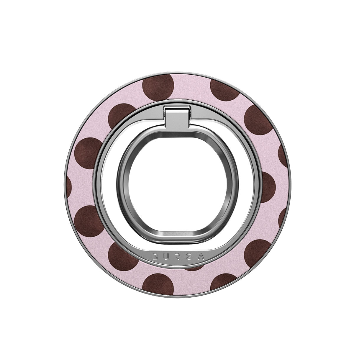 Nuestro anillo magnético se acopla al móvil con un clic muy agradable y sin necesidad de adhesivos. Úsalo para hacer scrolling con una sola mano, como soporte para ver contenido o, sencillamente, para presumir de funda BURGA a conjunto.