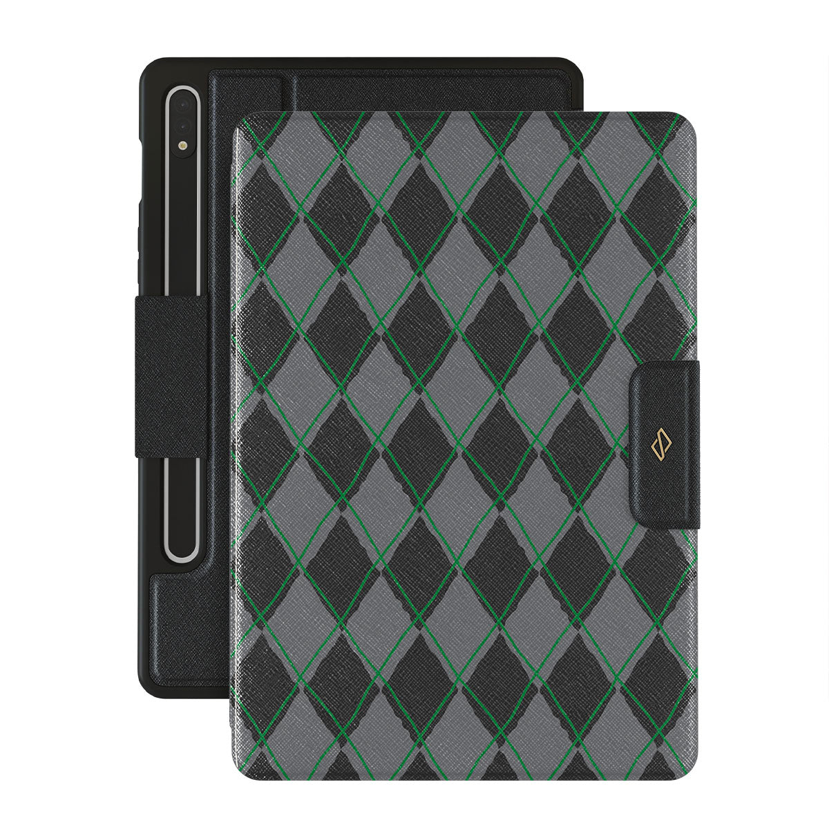 En este diseño: estampado de diamantes, verde y gris, patrón clásico y patrón geométrico