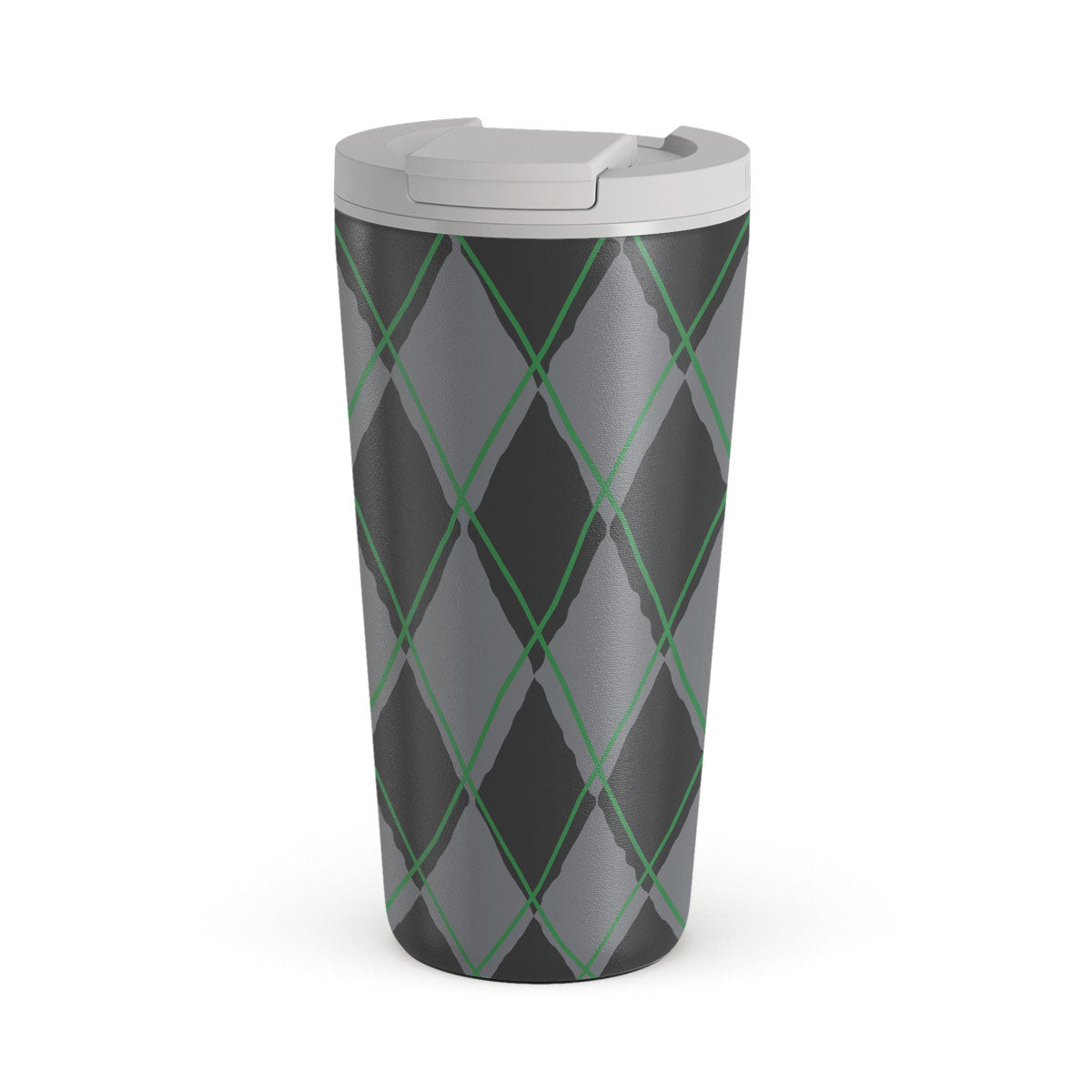 En este diseño: estampado de diamantes, verde y gris, patrón clásico y patrón geométrico