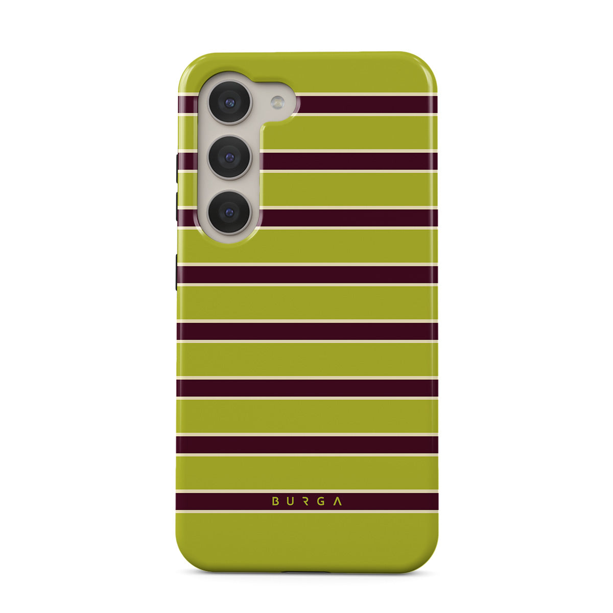 En este diseño: rayas horizontales gruesas, verde lima, burdeos