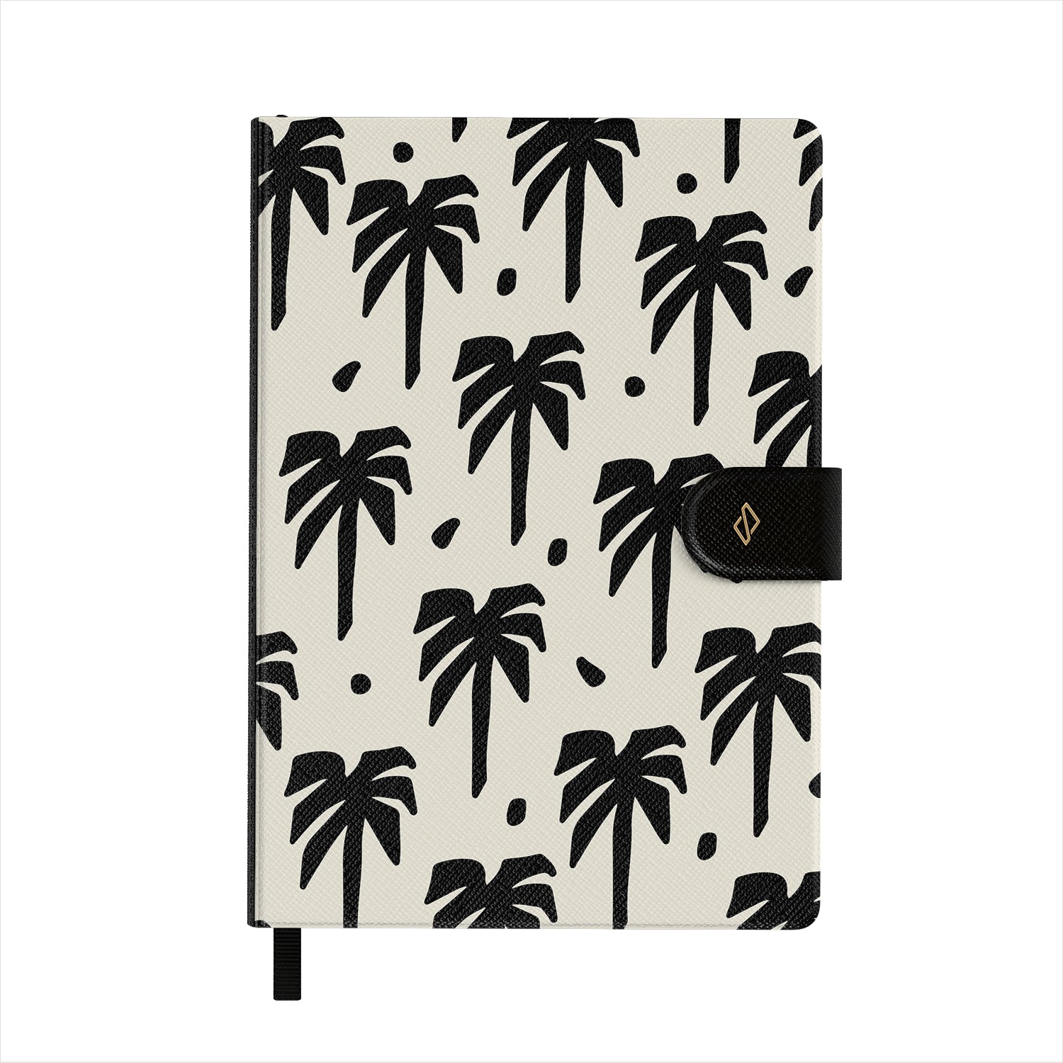 La portada está decorada con los diseños de BURGA impresos en piel sintética vegana. Incluye una elegante cinta negra marcapáginas.