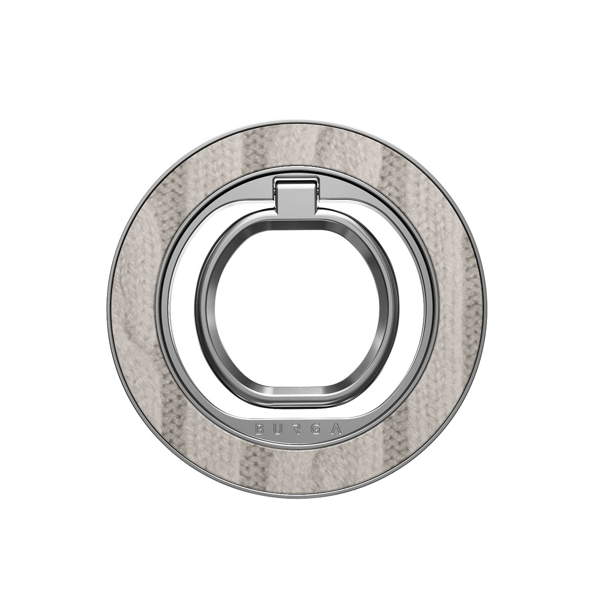 Nuestro anillo magnético se acopla al móvil con un clic muy agradable y sin necesidad de adhesivos. Úsalo para hacer scrolling con una sola mano, como soporte para ver contenido o, sencillamente, para presumir de funda BURGA a conjunto.
