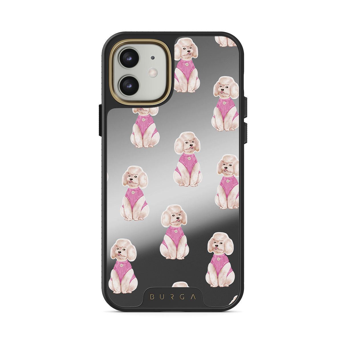 En este diseño: caniches, perros, mascotas, detalles rosas, espejo