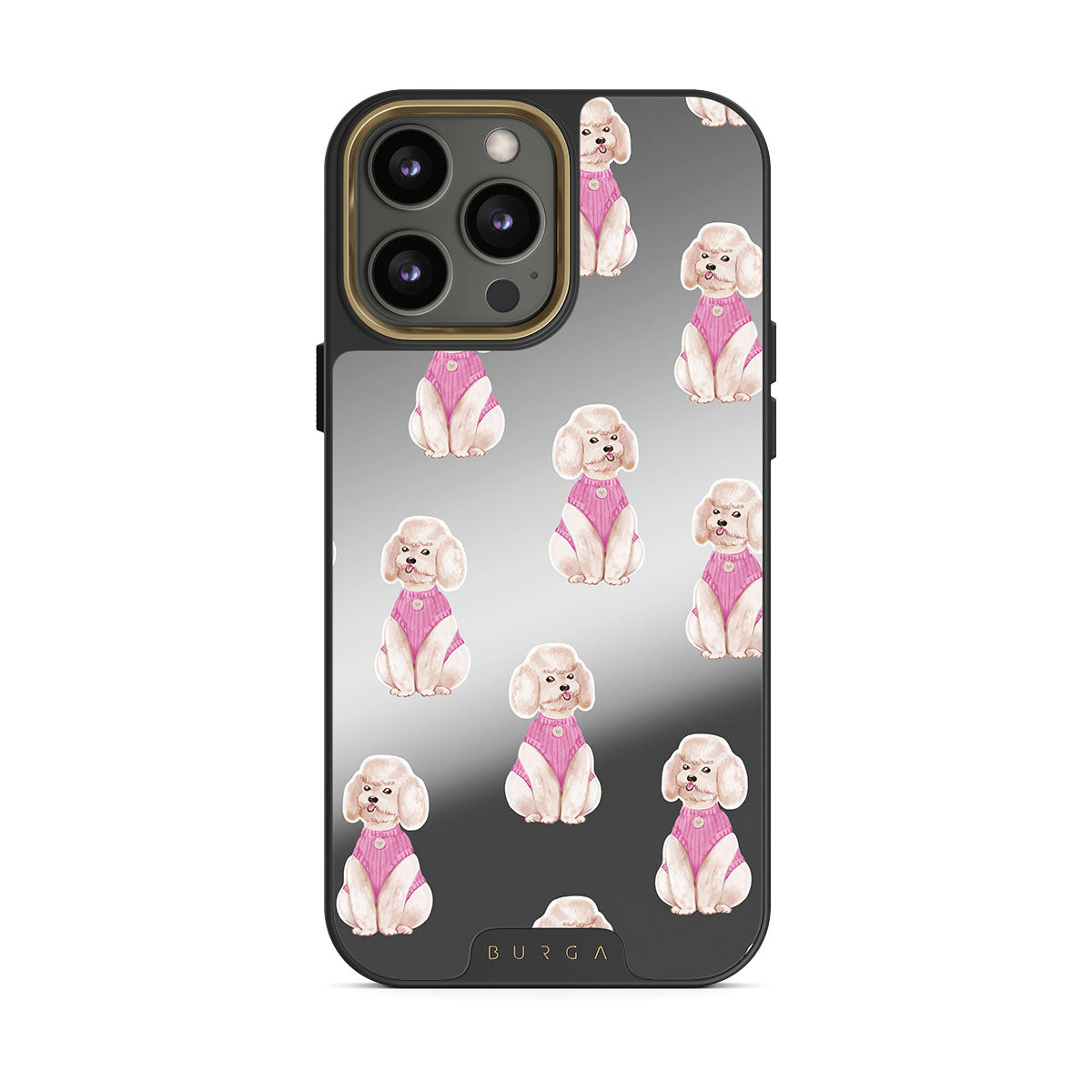 En este diseño: caniches, perros, mascotas, detalles rosas, espejo