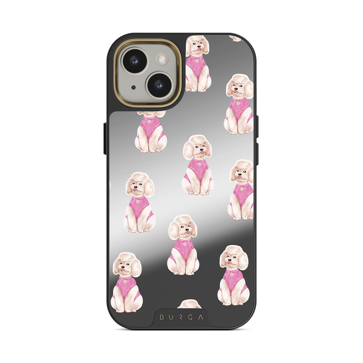 En este diseño: caniches, perros, mascotas, detalles rosas, espejo