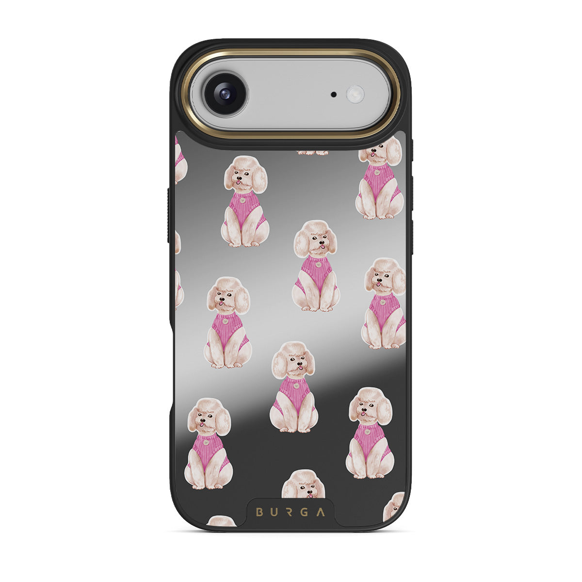 En este diseño: caniches, perros, mascotas, detalles rosas, espejo