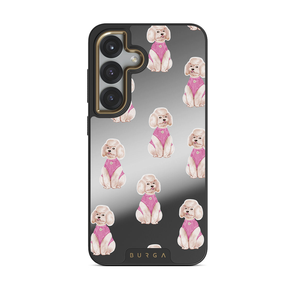 En este diseño: caniches, perros, mascotas, detalles rosas, espejo