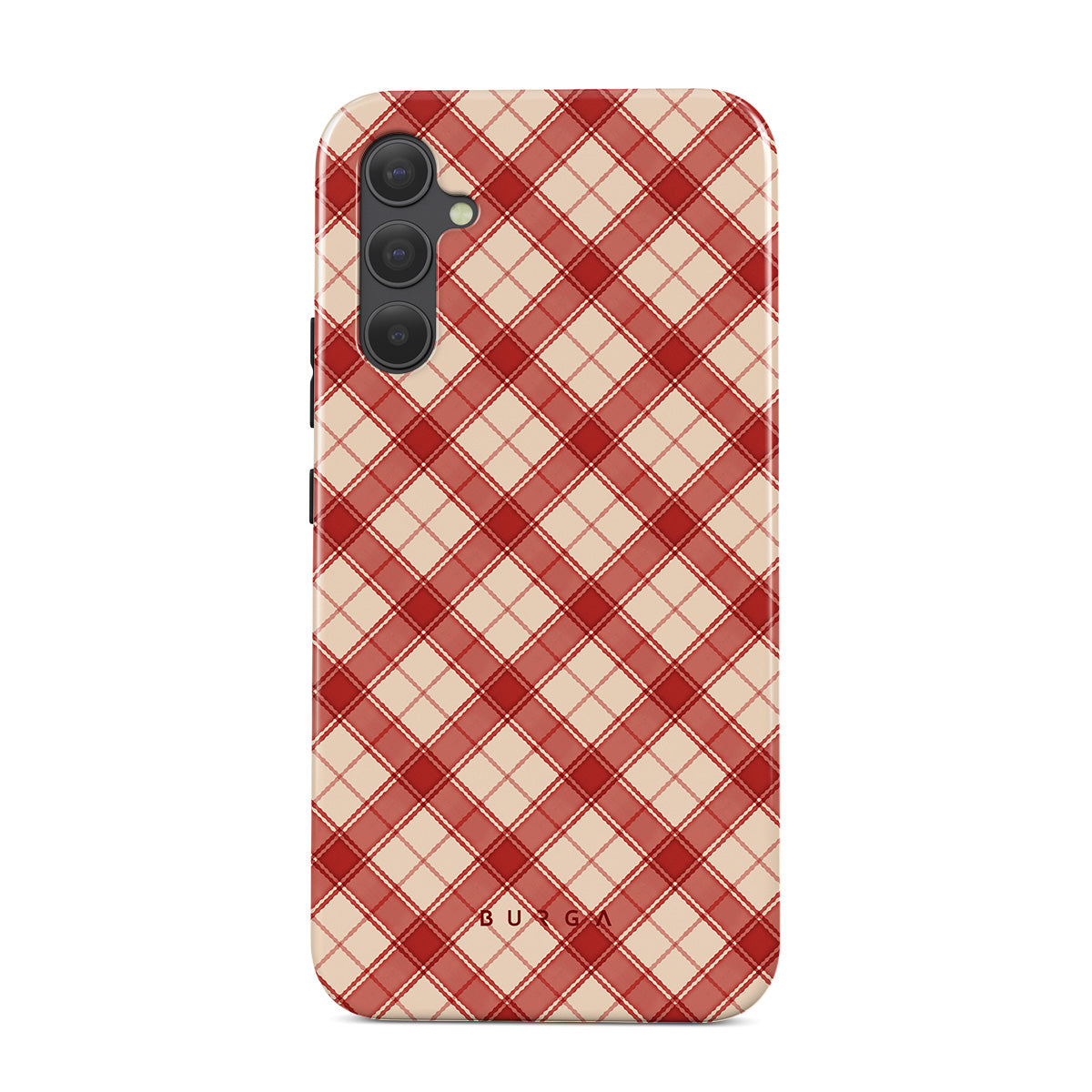 En este diseño: tartán rojo y beige, patrón de tartán diagonal, tartán clásico, estilo buffalo check, patrón tradicional de tartán navideño