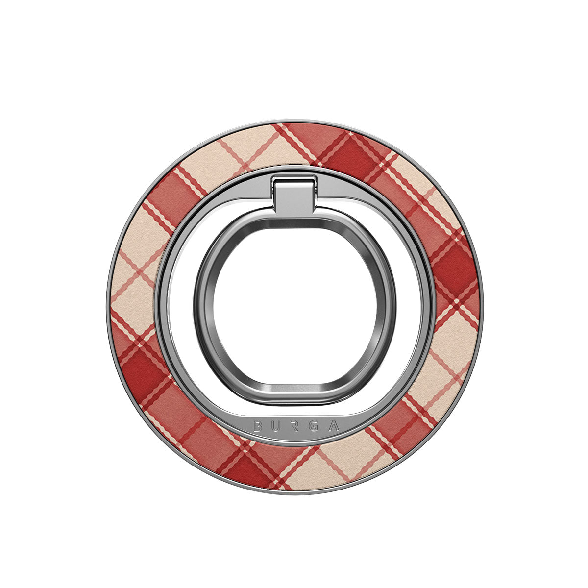 Nuestro anillo magnético se acopla al móvil con un clic muy agradable y sin necesidad de adhesivos. Úsalo para hacer scrolling con una sola mano, como soporte para ver contenido o, sencillamente, para presumir de funda BURGA a conjunto.