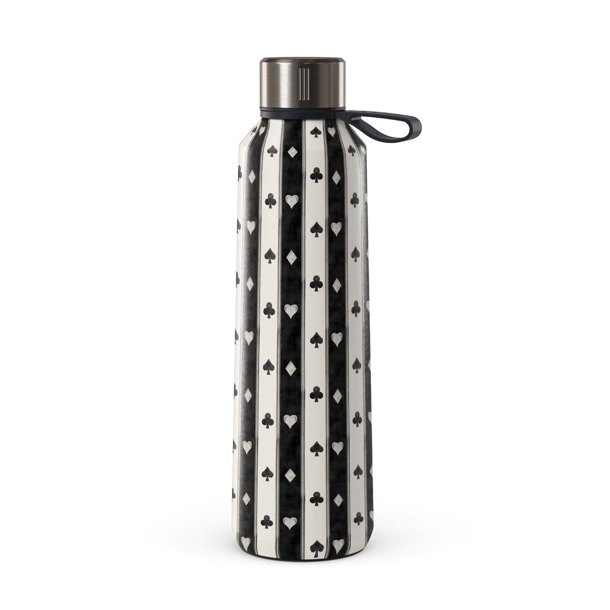 En este diseño: rayas en blanco y negro, corazones, palos de cartas, estilo vintage