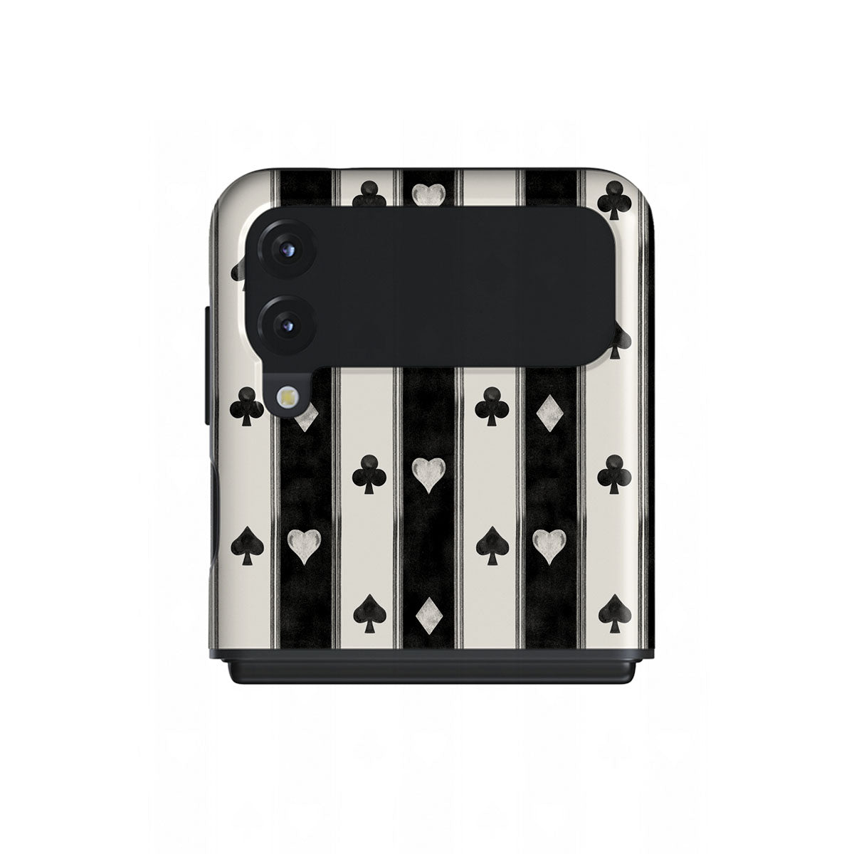 En este diseño: rayas en blanco y negro, corazones, palos de cartas, estilo vintage