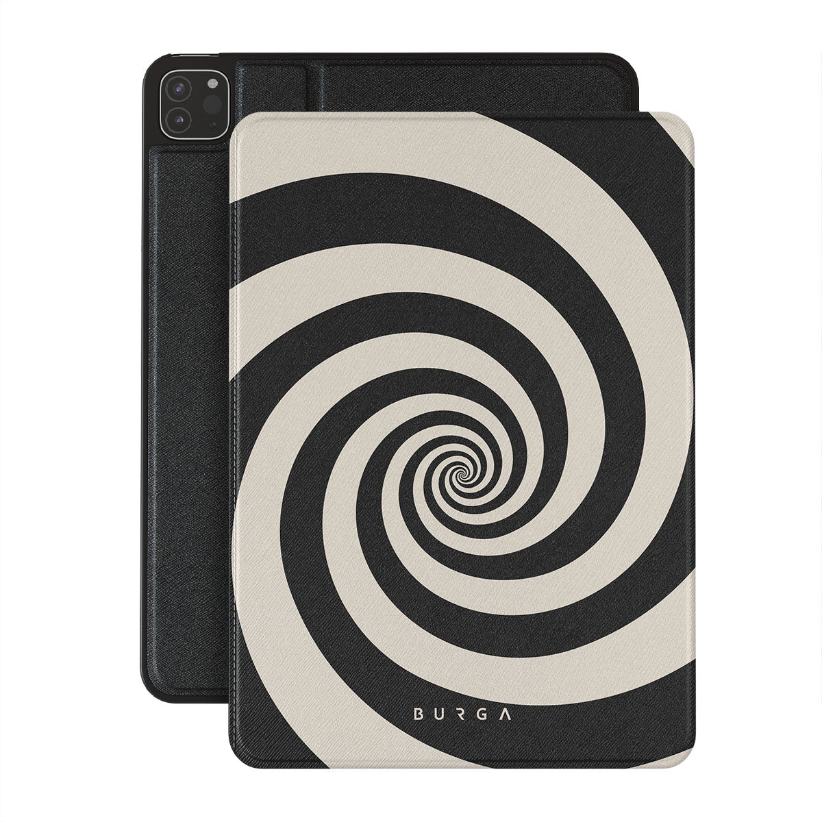 En este diseño: espiral blanco y negro, patrón hipnótico