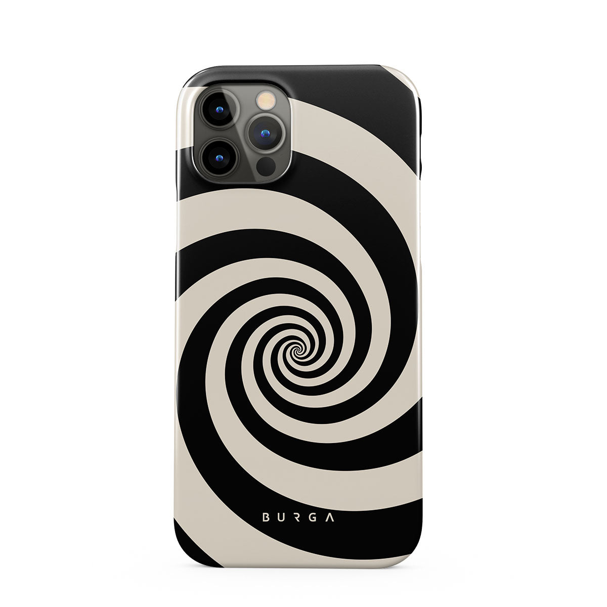 En este diseño: espiral blanco y negro, patrón hipnótico
