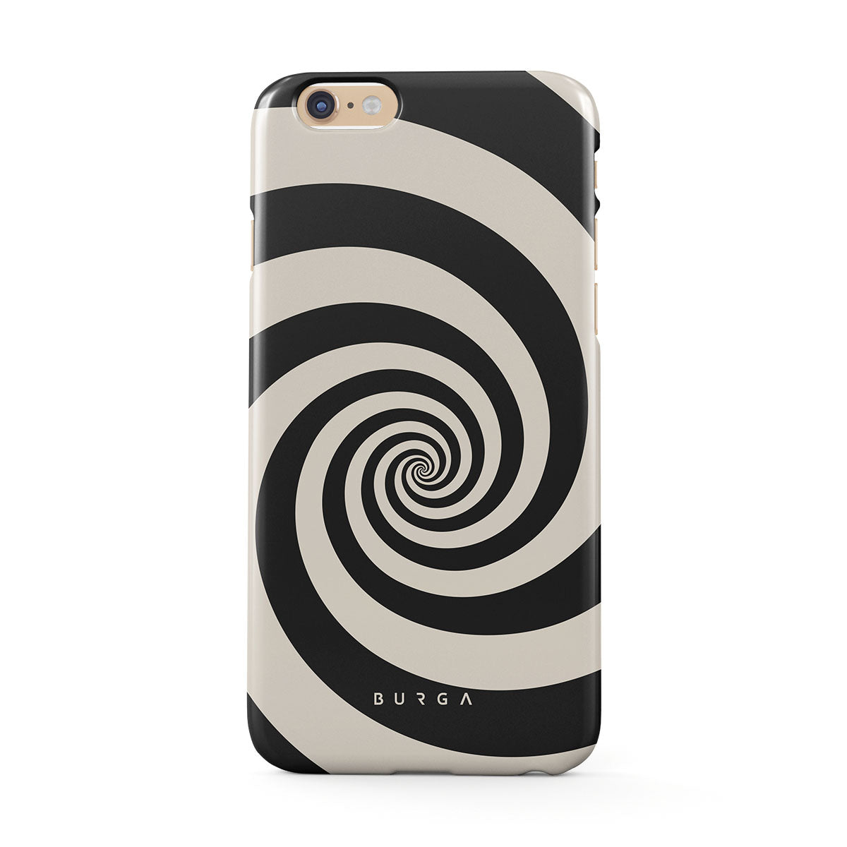 En este diseño: espiral blanco y negro, patrón hipnótico