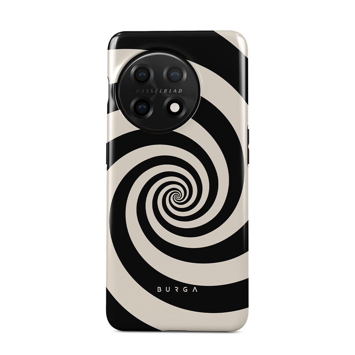 En este diseño: espiral blanco y negro, patrón hipnótico