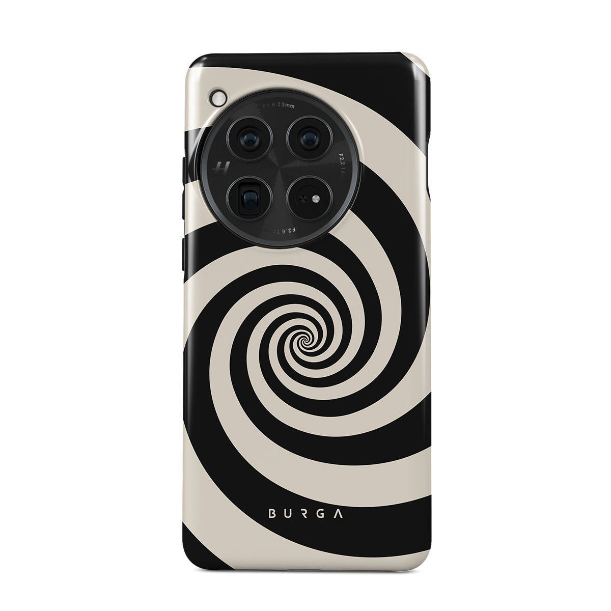 En este diseño: espiral blanco y negro, patrón hipnótico