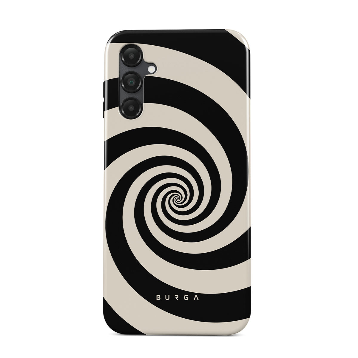 En este diseño: espiral blanco y negro, patrón hipnótico