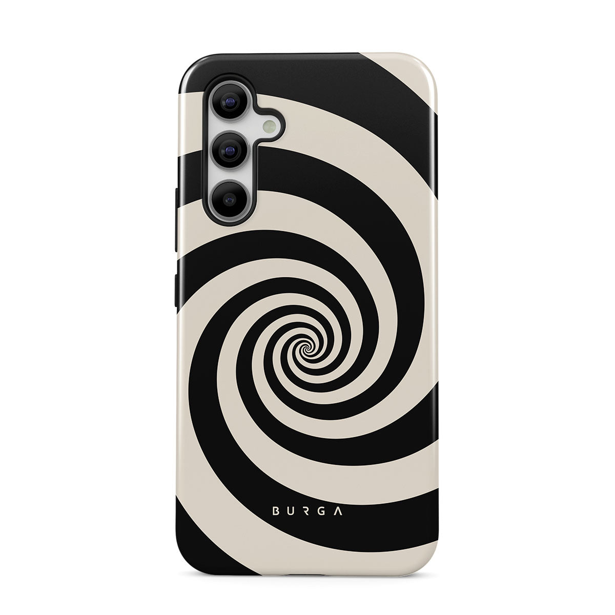 En este diseño: espiral blanco y negro, patrón hipnótico