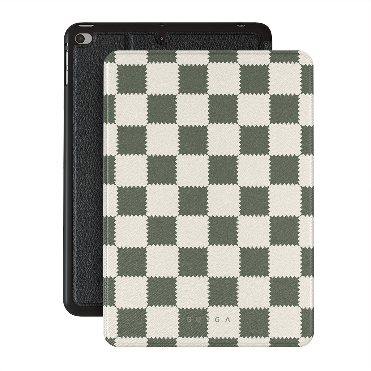 En este diseño: patrón de cuadros, verde y blanco y geométrico