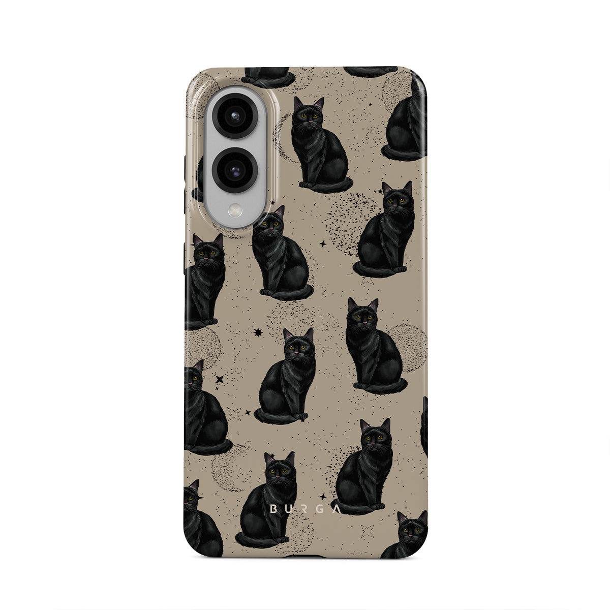 En este diseño: gatos negros, símbolos místicos.