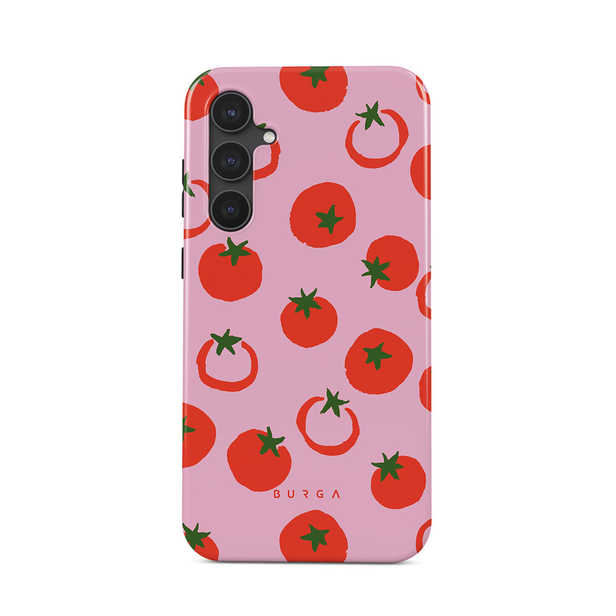 En este diseño: Tomates, colores audaces rojos y rosados.