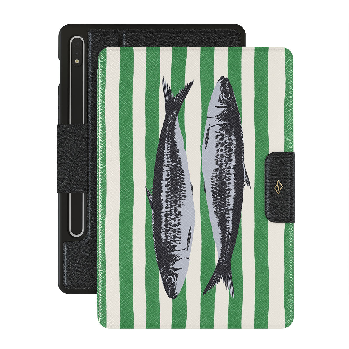 En este diseño: Sardinas, rayas verdes, motivos oceánicos.