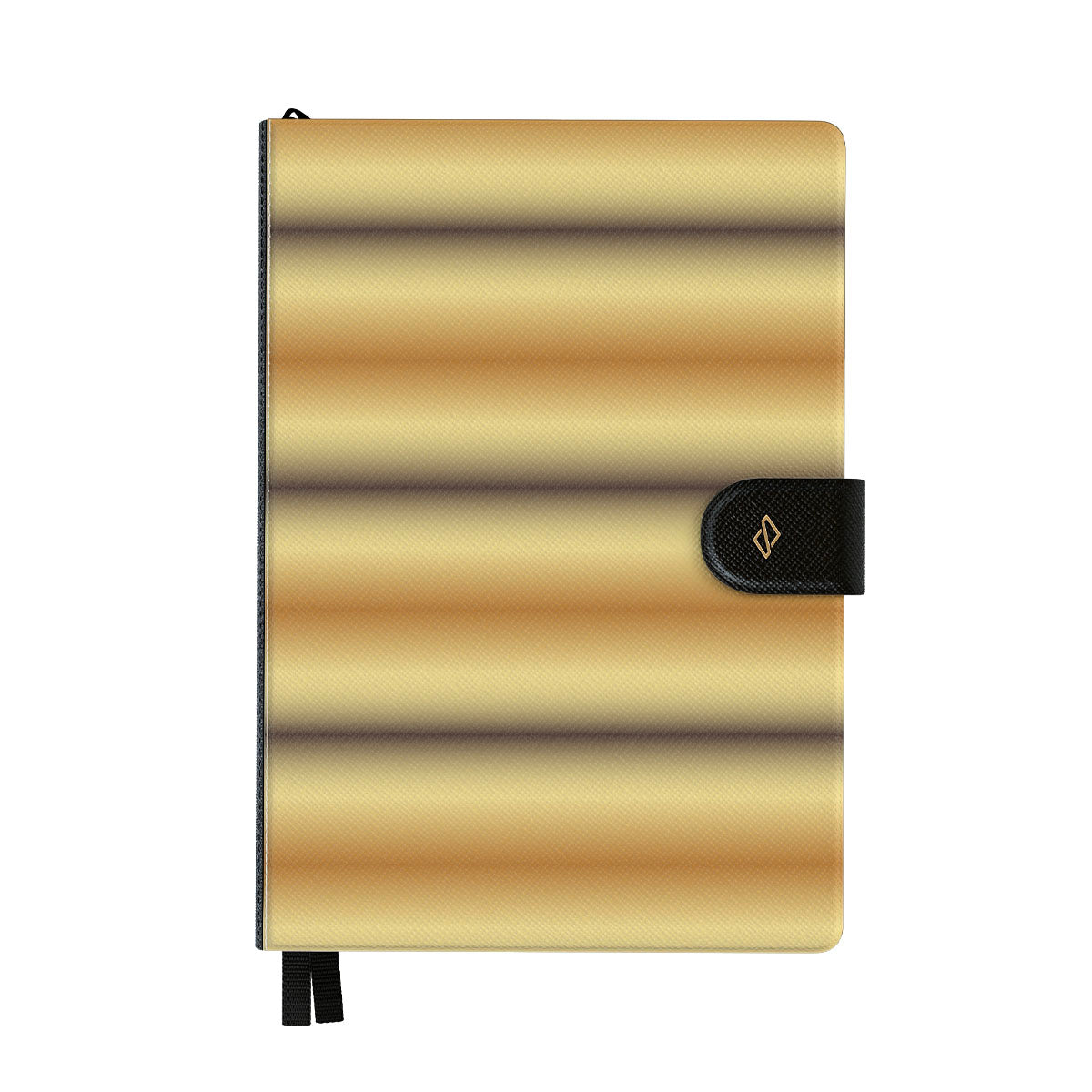 En este diseño: suave degradado dorado y rayas horizontales marrones y amarillas