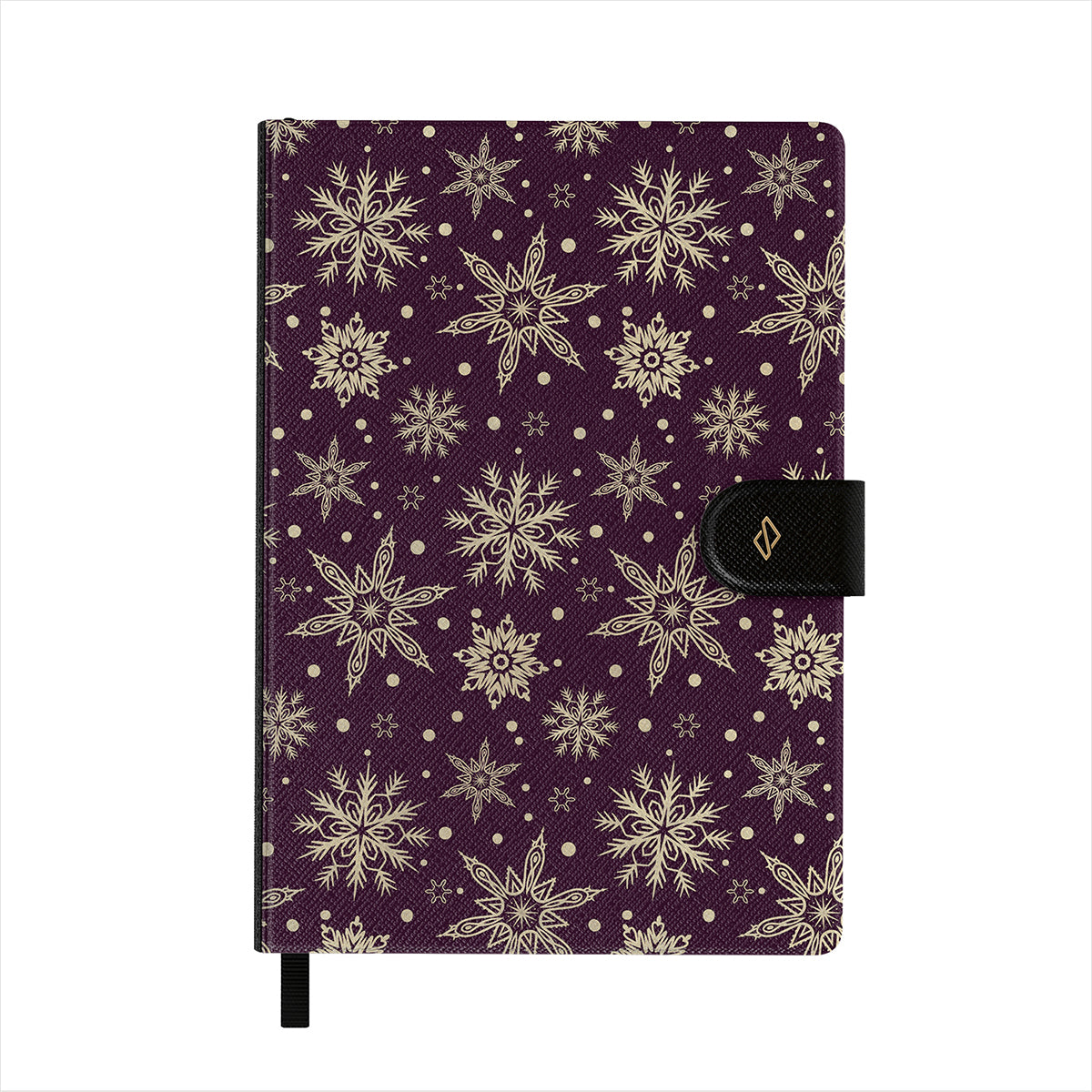 La portada está decorada con los diseños de BURGA impresos en piel sintética vegana. Incluye una elegante cinta negra marcapáginas.