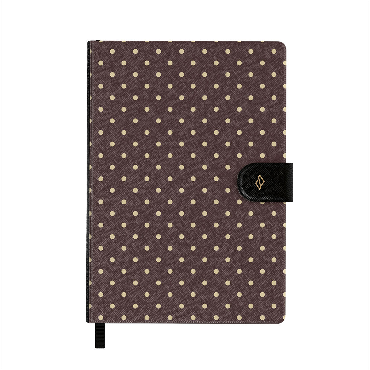 Esta agenda, revestida en una elegante piel saffiano vegana y asegurada con un bonito cierre magnético, está lista para resistir a esos derrames de café y pequeños accidentes del día a día.