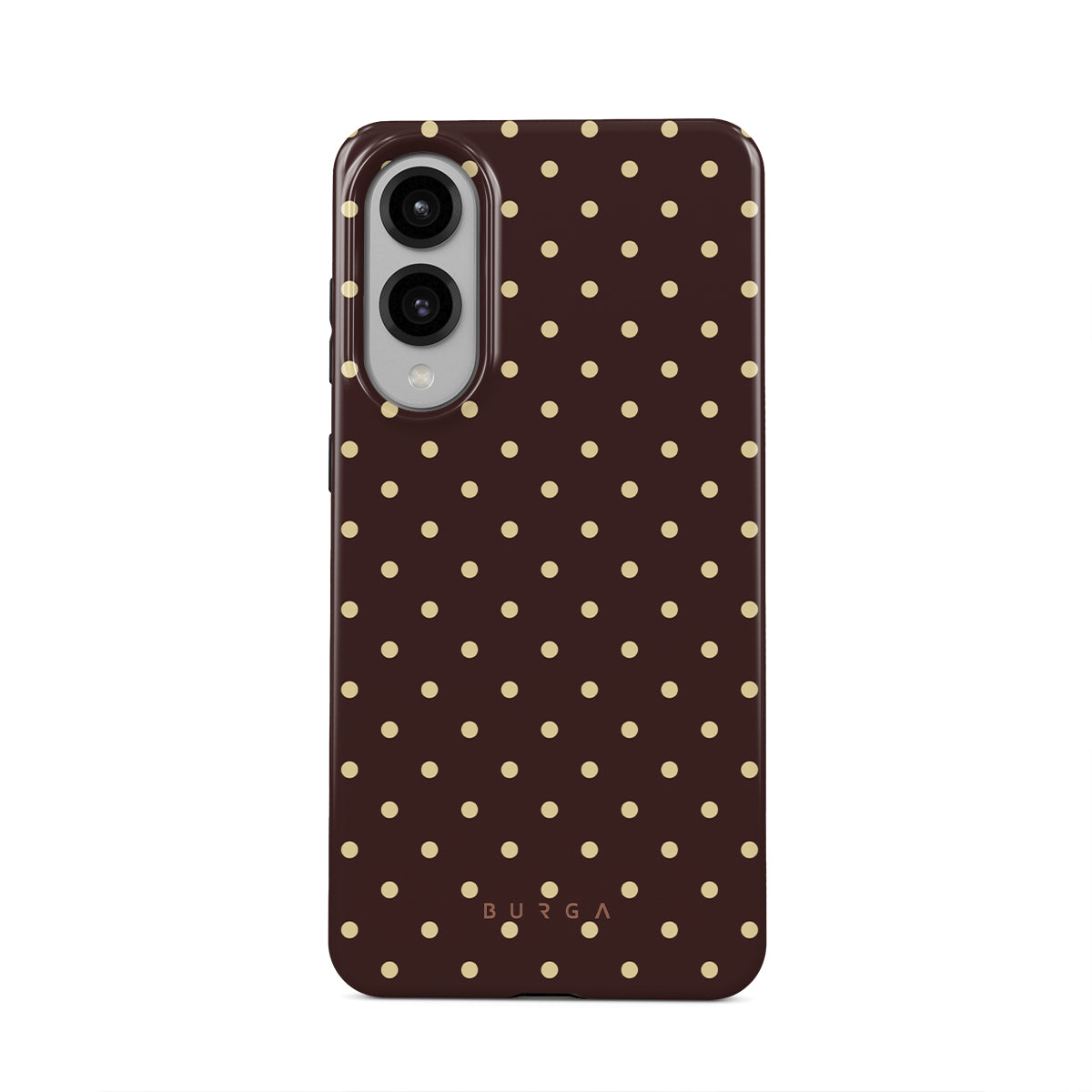 En este diseño: fondo marrón, lunares beige