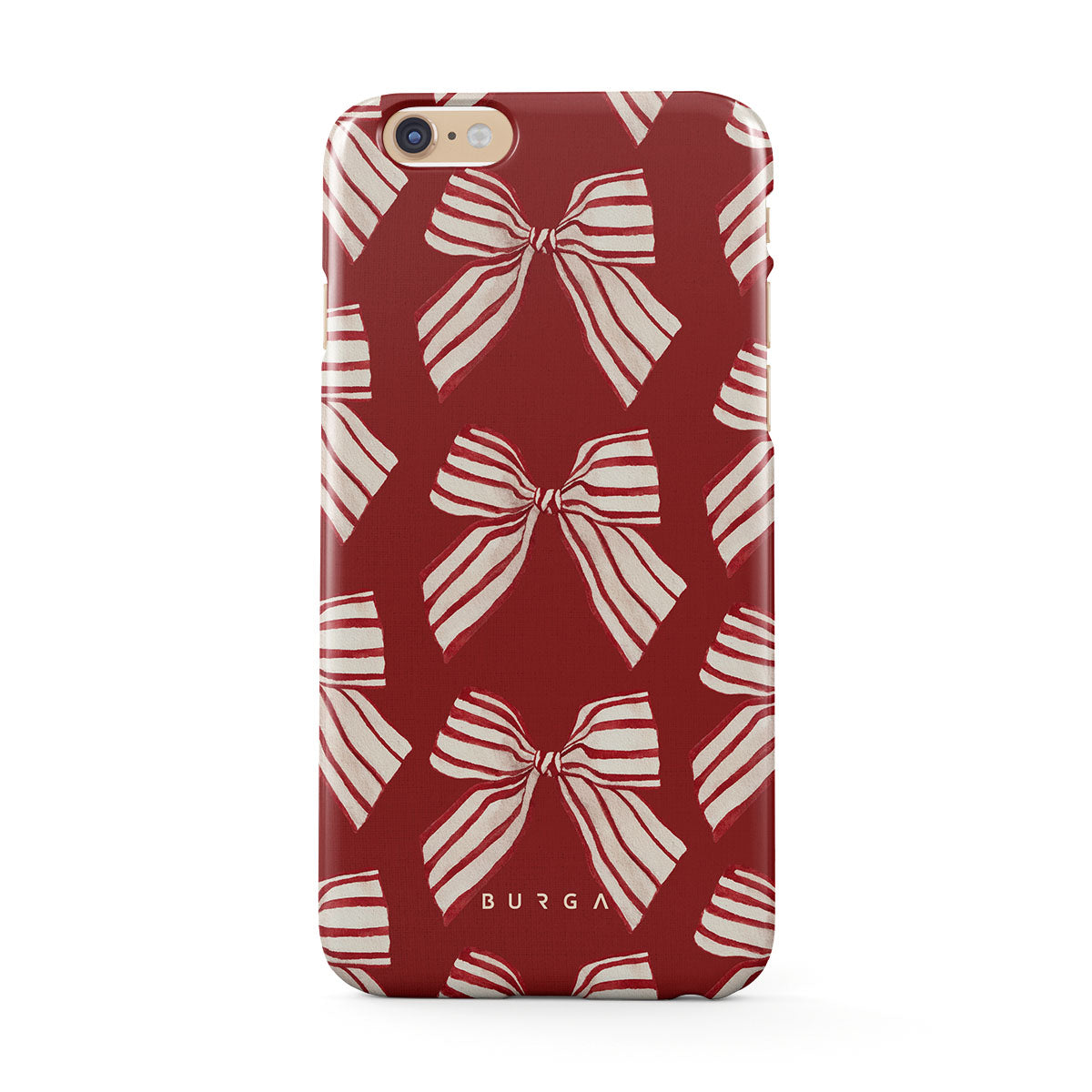 El diseño presenta: lazos, rayas, rojo, blanco, motivos navideños