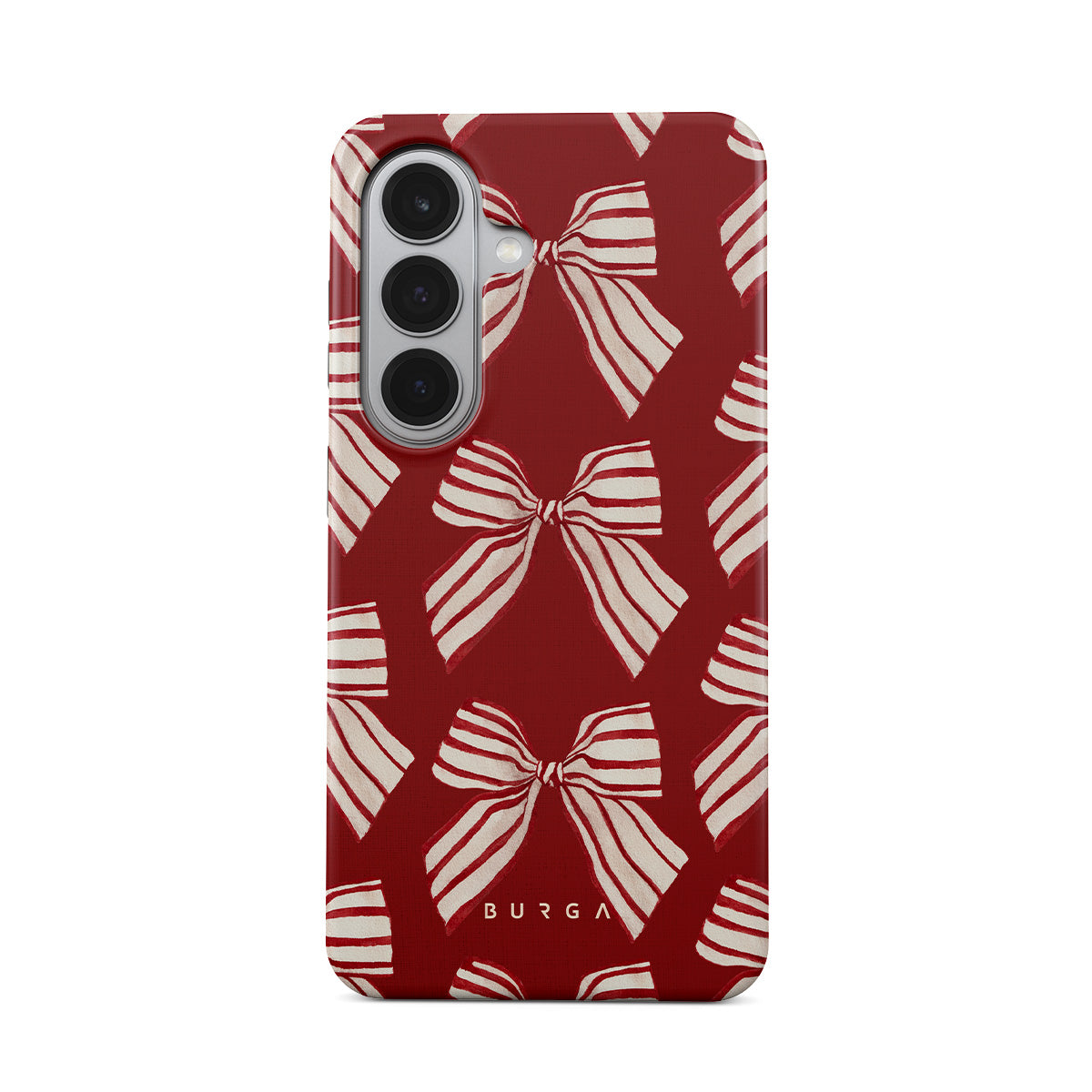 El diseño presenta: lazos, rayas, rojo, blanco, motivos navideños