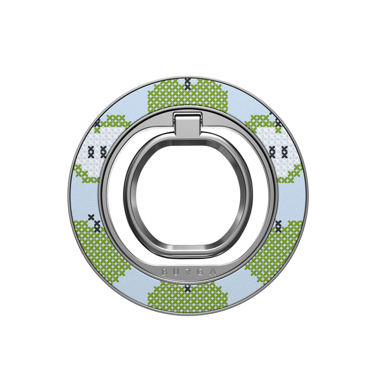Nuestro anillo magnético se acopla al móvil con un clic muy agradable y sin necesidad de adhesivos. Úsalo para hacer scrolling con una sola mano, como soporte para ver contenido o, sencillamente, para presumir de funda BURGA a conjunto.