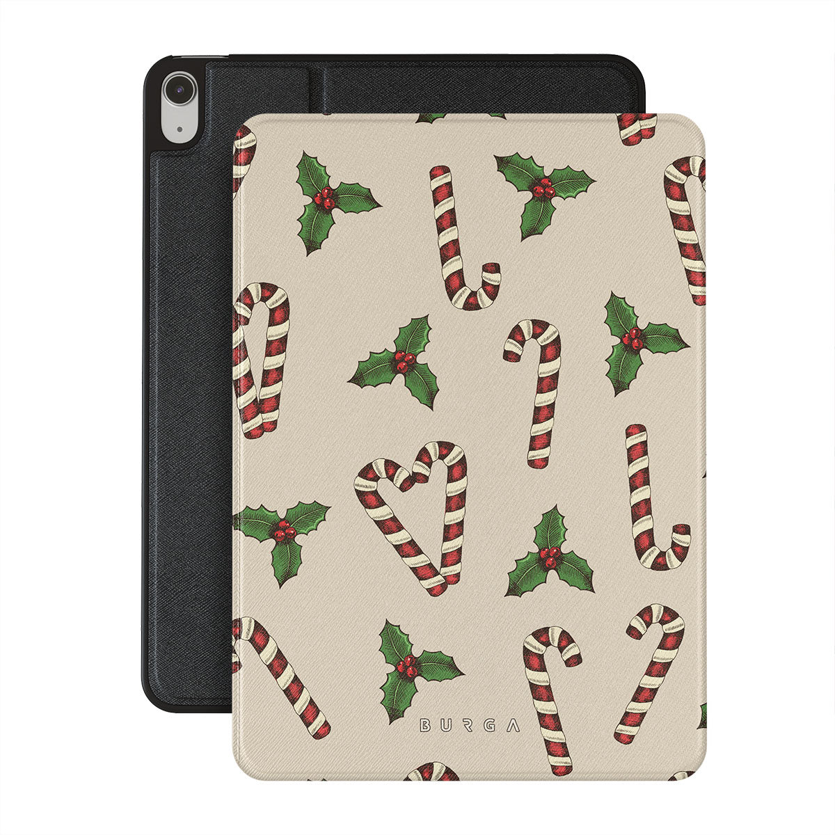 El diseño presenta: bastones de caramelo, acebo, verde, blanco, patrón navideño