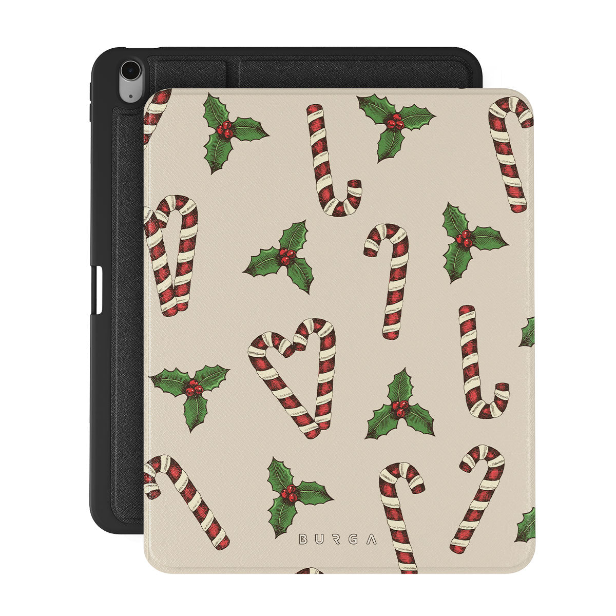 El diseño presenta: bastones de caramelo, acebo, verde, blanco, patrón navideño