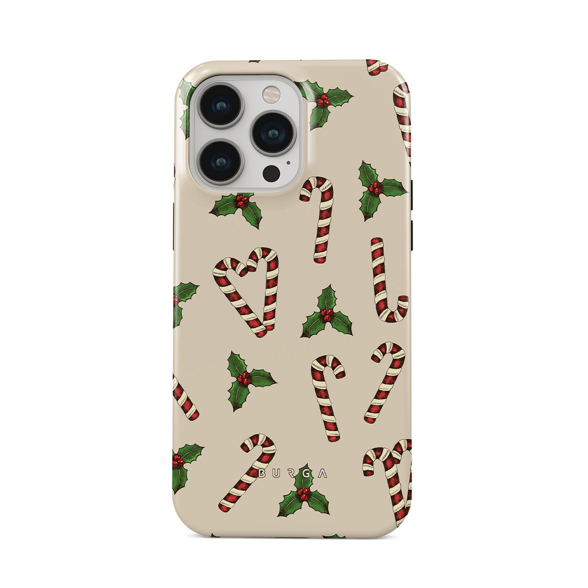 El diseño presenta: bastones de caramelo, acebo, verde, blanco, patrón navideño