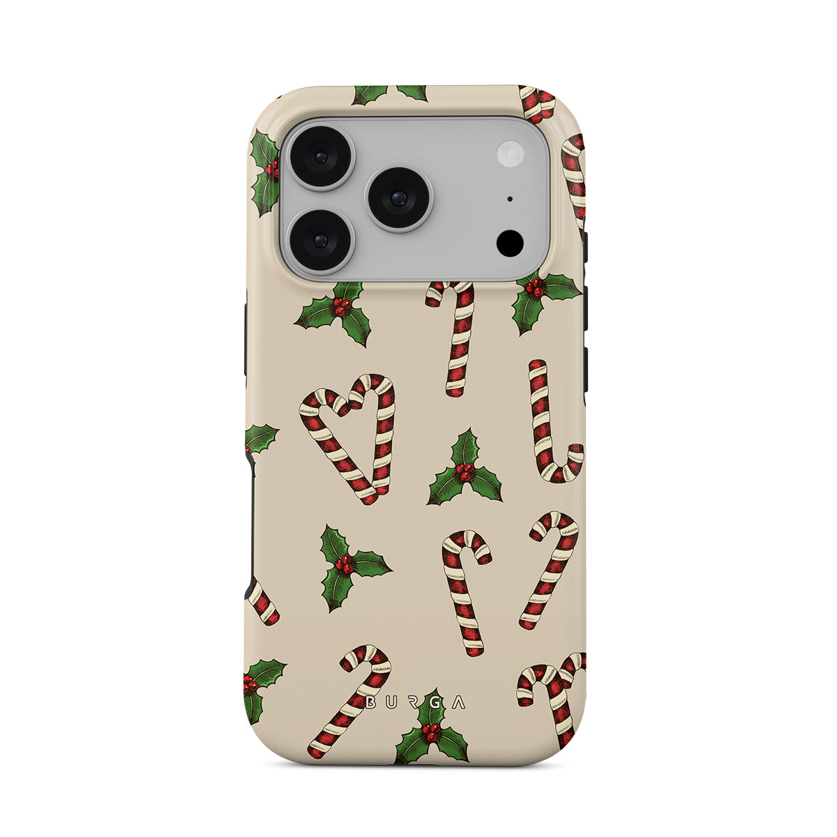 El diseño presenta: bastones de caramelo, acebo, verde, blanco, patrón navideño