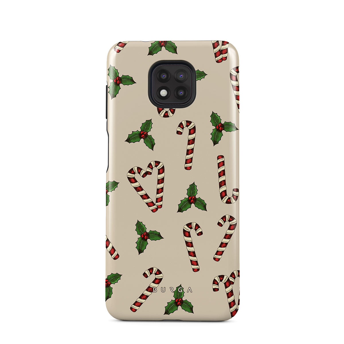 El diseño presenta: bastones de caramelo, acebo, verde, blanco, patrón navideño